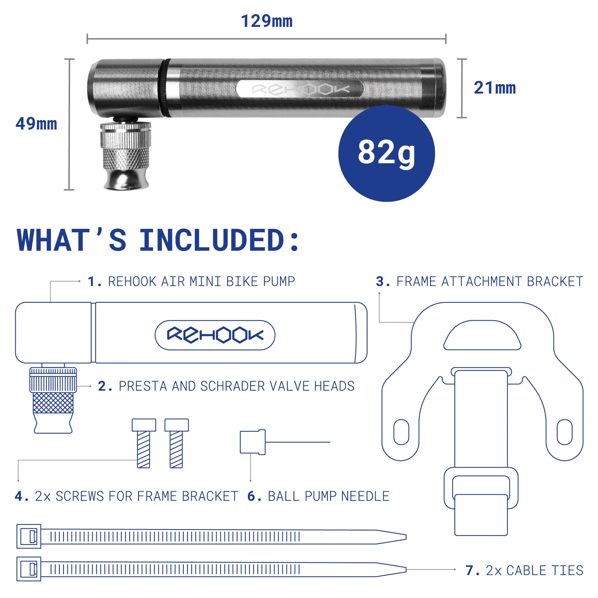 Rehook AIR is a precision engineered universal handheld pump, designed for all cyclists. It is extremely lightweight and compact so it won’t slow you down. You can carry it in your pocket or attach it to your bike with its secure bracket. Built with Presta and Schrader valves, it’s perfect for all types of bikes and inner tubes.